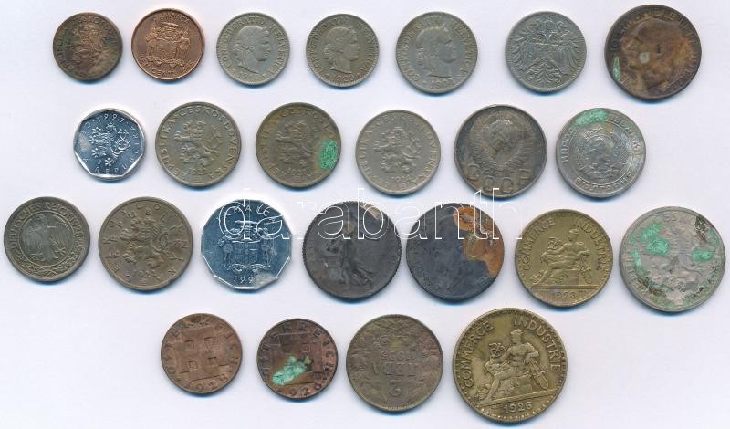 24db vegyes külföldi fémpénz, közte Franciaország 1909. 1Fr Ag + Románia 1910. 1L Ag T:vegyes patina, szennyeződés