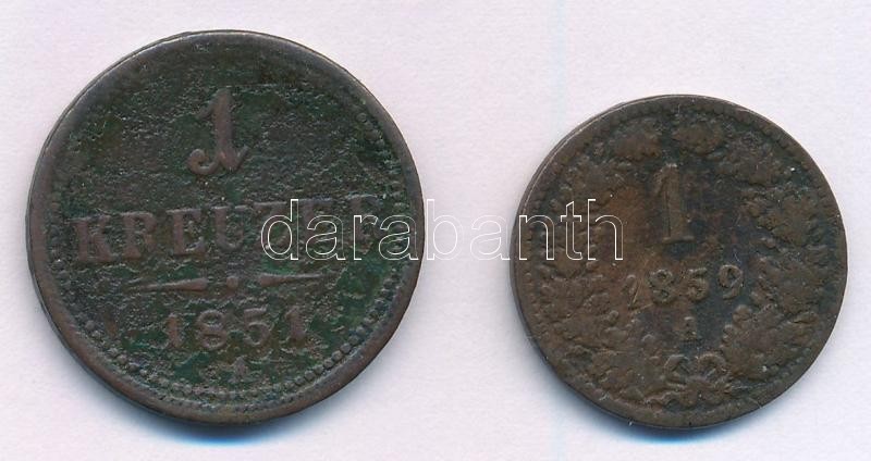 Ausztria 1851A 1kr Cu + 1859A 1kr Cu T:2-,3