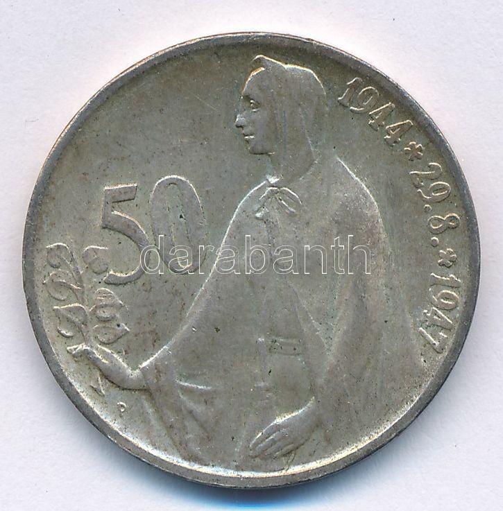 C... https://www.darabanth.com/hu/379-Gyorsarveres/379.0/Numizmatika/Kulfoldi-fem-es-ezustpenzek~2000014/Csehszlovakia-1947-50K-Ag-Szlovak-felkeles-T1-patina-Czechoslovakia-1947-50-Korun-Ag-Slov~II2179198