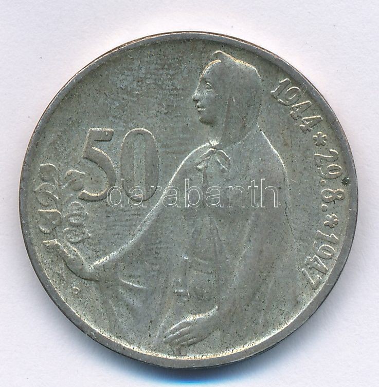 C... https://www.darabanth.com/hu/379-Gyorsarveres/379.0/Numizmatika/Kulfoldi-fem-es-ezustpenzek~2000014/Csehszlovakia-1947-50K-Ag-Szlovak-felkeles-T1-patina-Czechoslovakia-1947-50-Korun-Ag-Slov~II2179200
