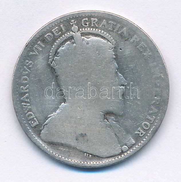 Canada 1908. 25 Cent... https://www.darabanth.com/hu/379-Gyorsarveres/379.0/Numizmatika/Kulfoldi-fem-es-ezustpenzek~2000014/Kanada-1908-25c-Ag-VII-Eduard-T3--Canada-1908-25-Cents-Ag-Edward-VII-CVG-Krause-KM2311~II2139657