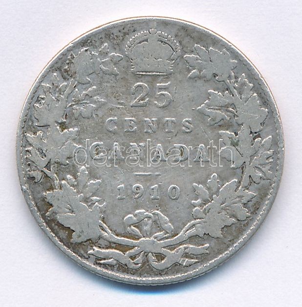 Canada 1910. 25 Cents... https://www.darabanth.com/hu/379-Gyorsarveres/379.0/Numizmatika/Kulfoldi-fem-es-ezustpenzek~2000014/Kanada-1910-25c-Ag-VII-Eduard-T3-Canada-1910-25-Cents-Ag-Edward-VII-CF-Krause-KM2311a~II2139684
