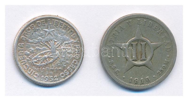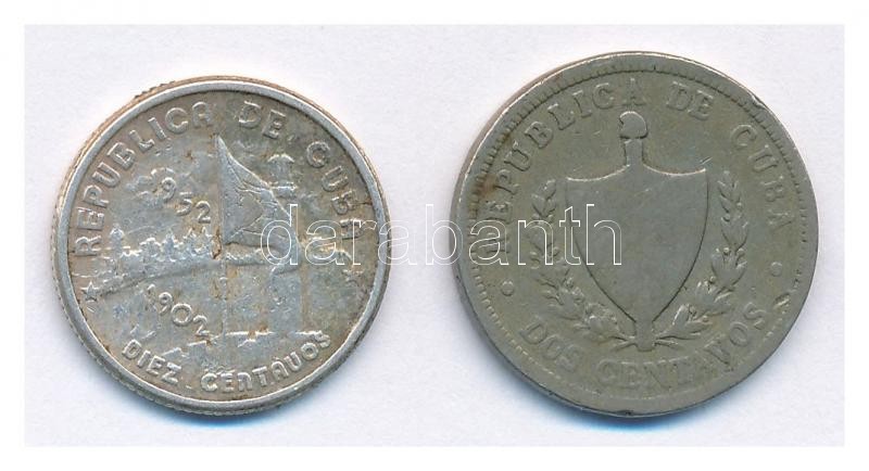 Leírás: Kuba 1916. 2c Cu-Ni + 1952. 10c Ag T:2,2-