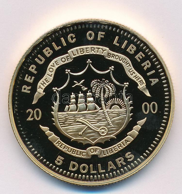 Liberia 2000. 5 Doll... https://www.darabanth.com/hu/379-Gyorsarveres/379.0/Numizmatika/Kulfoldi-fem-es-ezustpenzek~2000014/Liberia-2000-5USD-ECU-probaveret-TPP-Liberia-2000-5-Dollar-ECU-trial-strike-CPP~II2128521