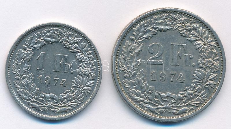 Leírás: Svájc 1974. 1Fr Cu-Ni + 2Fr Cu-Ni T:1,1-