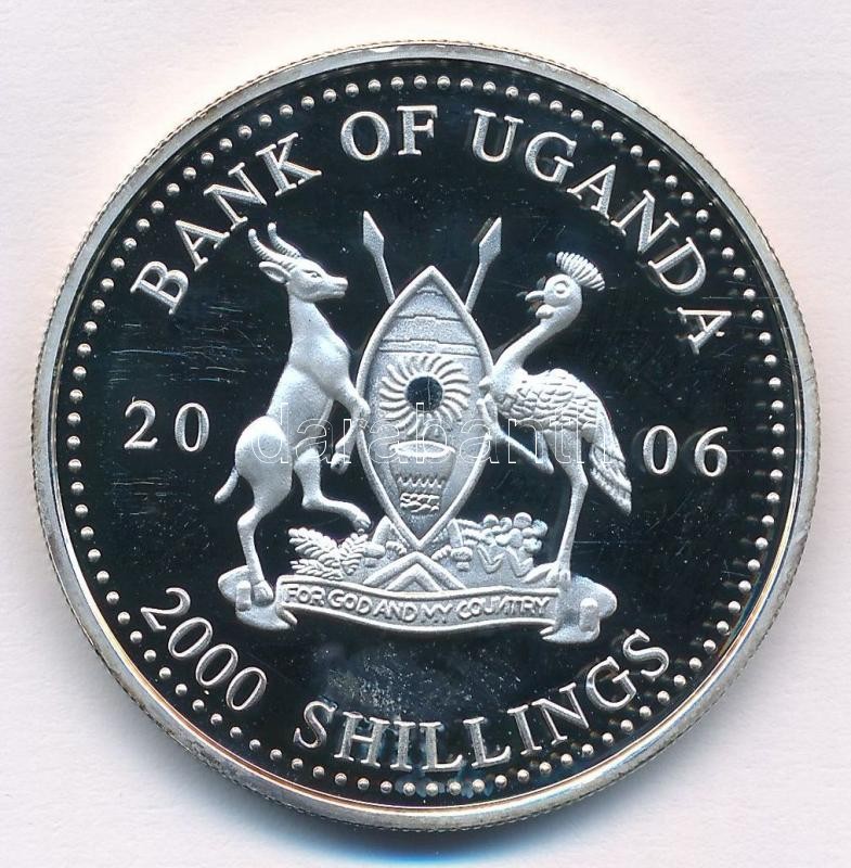 Uganda 2006. 2000Sh Ag "A labdarúgás halhatatlanjainak csarnoka - Argentína/Spanyolország 1950-es évek / Alfredo di Stefano" tanúsítvánnyal, bizonytalan ezüsttartalmú! T:1 (eredetileg PP) patina
