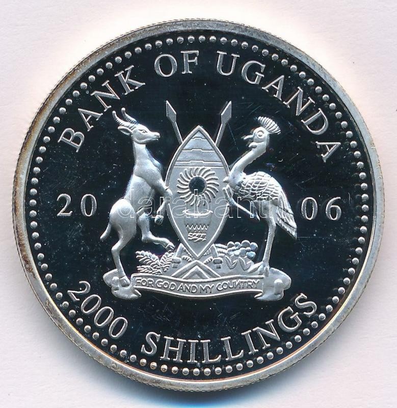 Uganda 2006. 2000Sh Ag "A labdarúgás halhatatlanjainak csarnoka - Portugália 1960-as évek / Eusébio" tanúsítvánnyal, bizonytalan ezüsttartalmú! T:1 (eredetileg PP) patina