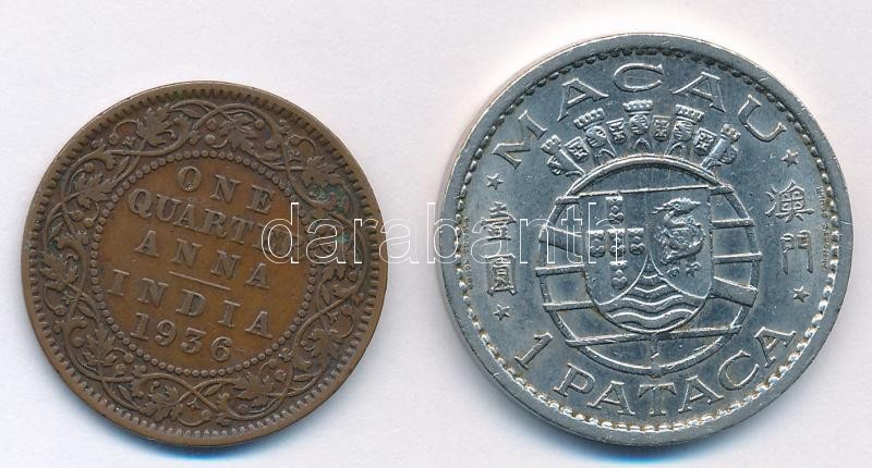Vegyes: Brit-India 1936. 1/4A Br + Makaó 1968. 1P Ni T:2,2-