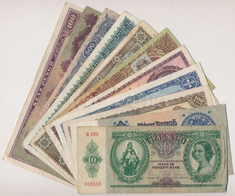 Leírás: 1930-1946. 11db-os (11xklf, 10P-1.000.000.000P) vegyes pengő bankjegy tétel T:II--III-