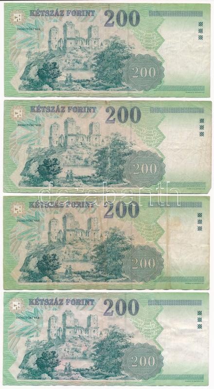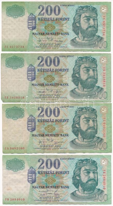 1998-2007. 200Ft (4xklf) T:III F53,F53C,F53F,F53G https://www.darabanth.com/hu/379-Gyorsarveres/379.0/Numizmatika/Magyar-bankjegyek~2000007/1998-2007-200Ft-4xklf-TIII-F53-F53C-F53F-F53G~II2194494