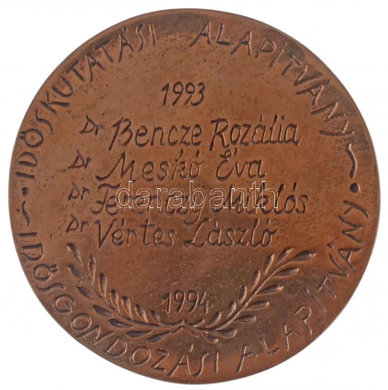 Leírás: Turi György (1952- ) 1998. "Brunner Zoltánné Jámbor Gréte alapító / Időskutatási Alapítvány - Idősgondozási Alapítvány" Br emlékérem (99mm) T:1-