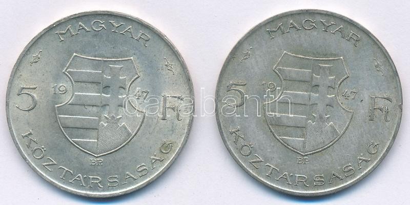 1947. 5Ft Ag "Kossuth" (2x) T:2,2- kis ph. Adamo F8.1 https://www.darabanth.com/hu/379-Gyorsarveres/379.0/Numizmatika/Magyar-es-magyar-verdejelu-fem-es-ezustpenzek~2000008/1947-5Ft-Ag-Kossuth-2x-T2-2-kis-ph-Adamo-F81~II2170010