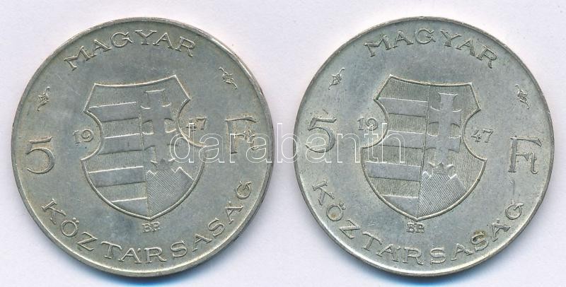 1947. 5Ft Ag "Kossuth" (2x) T:2- Adamo F8.1 https://www.darabanth.com/hu/379-Gyorsarveres/379.0/Numizmatika/Magyar-es-magyar-verdejelu-fem-es-ezustpenzek~2000008/1947-5Ft-Ag-Kossuth-2x-T2-Adamo-F81~II2170287