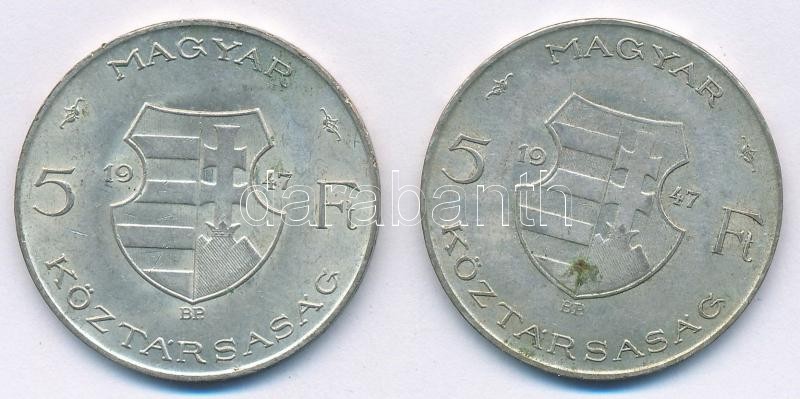 Leírás: 1947. 5Ft Ag "Kossuth" (2x) T:2- patina Adamo F8.1