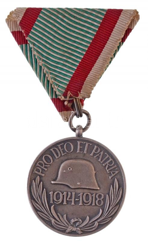 1929. "Magyar Háborús Emlékérem kardokkal, sisakkal" ezüstözött Br kitüntetés mellszalaggal, "BRONZ" fémjellel a hátlapon T:1-,2 Hungary 1929. "Hungarian Commemorative War Medal with swords and a helmet" silver plated Br decoration with ribbon, with "BONZE" hallmark on the back C:AU,XF NMK 418.