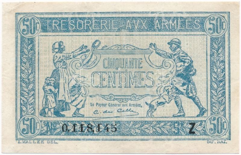 Leírás: Franciaország / Katonai kiadás 1919. 50c "TRESORERIE AVX ARMEES" T:II