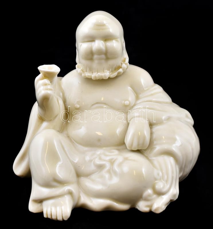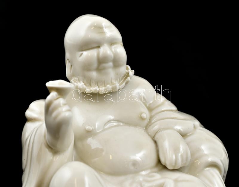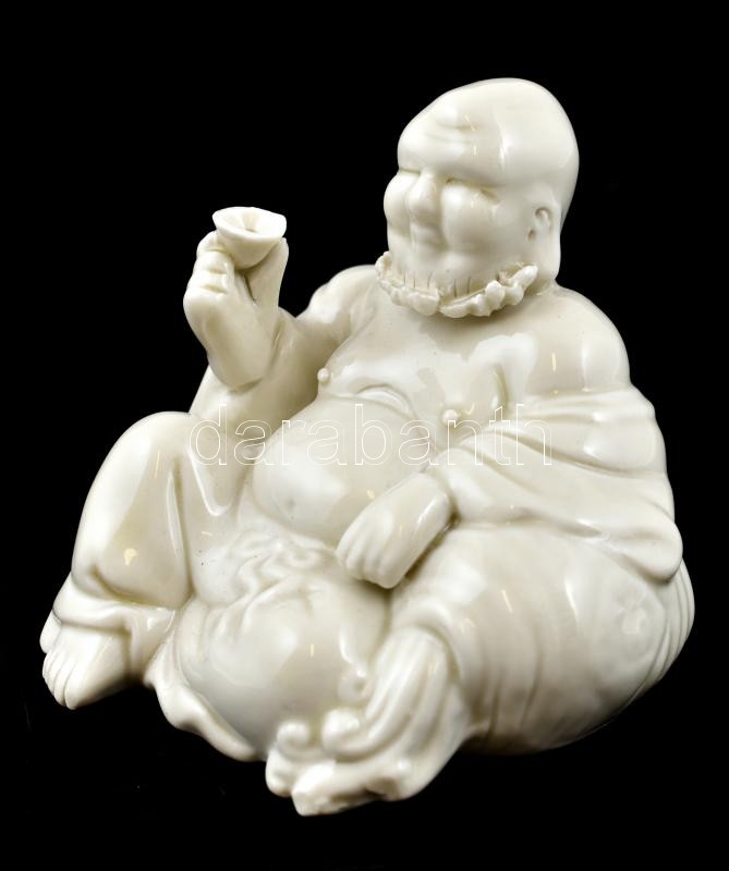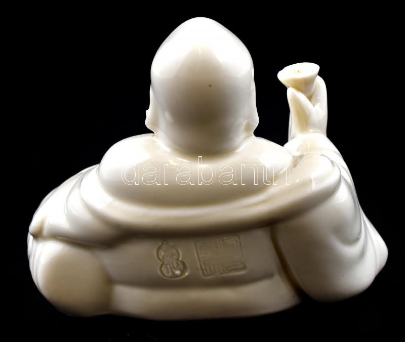 Leírás: Fehér mázas porcelán Buddha, jelzett, kis kopásnyomokkal, m: 9 cm
