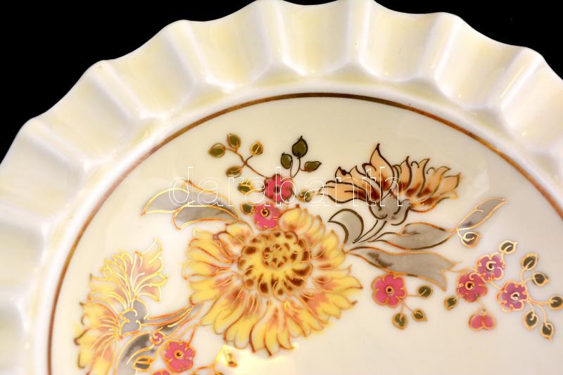 Leírás: Zsolnay virág mintás hamutál. Kézzel festett, jelzett, hibátlan. 15,5 cm