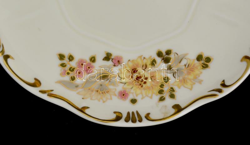 Leírás: Zsolnay virág mintás kompótos készlet 6 db csésze d: 12,5 cm aljjal. Kézzel festett, jelzett, kis kopásokkal.