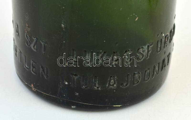 Wellisch Manó és fiai konzervgyára Budapest üveg, porcelán dugóval, apró kopásokkal, m: 27,5 cm + Régi vizespalack, "Kristály" felirattal, "Lukácsfürdő R.T." felirattal, apró kopással, porcelán dugóval, m: 33,5 cm