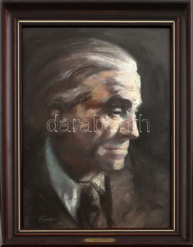 Filep István (1954-): Nagy Oszkár nagybányai festőművész portréja. Pasztell, papír, jelzett, üvegezett fakeretben, 40×29 cm / István Filep (1954-): Portrait of painter Oszkár Nagy. Pastel on paper, signed, framed, 40×29 cm