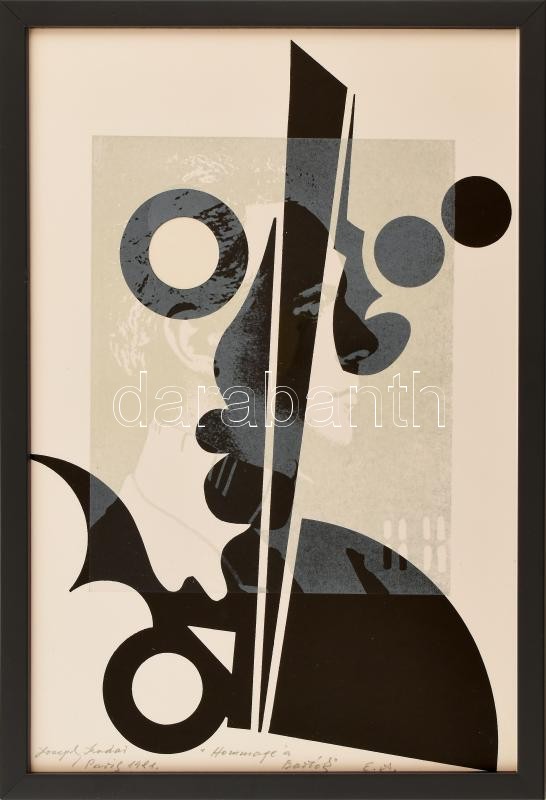 Joseph Kádár (1936-2019): Hommage á Bartók, 1981. Szitanyomat, papír, jelzett. Művészpéldány E.A. jelzéssel. Üvegezett fa keretben. 39×26 cm / Joseph Kádár (1936-2019): Hommage á Bartók, 1981. Screenprint on paper, signed. E.A. artist's proof. Framed with glass. 39x26 cm
