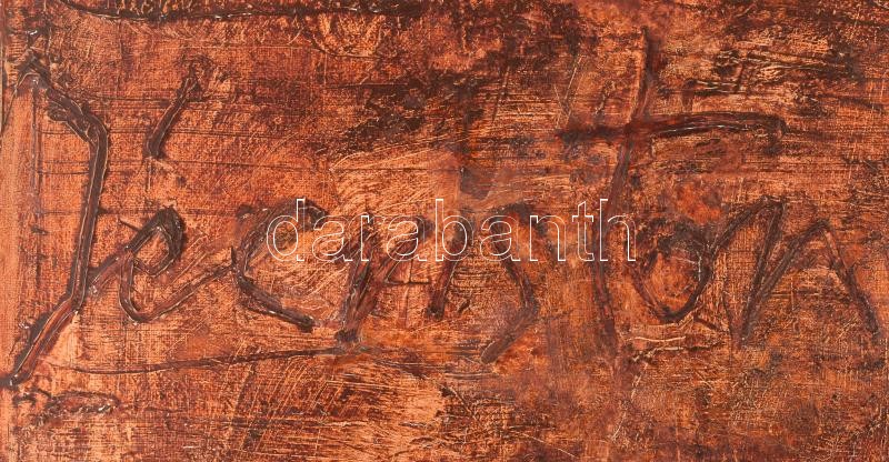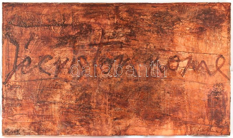 Lakner László (1936-): J' ecris ton nome, 1995. Olaj, vászon, jelezve jobbra lent. 50×86,5 cm. Lakner László, a magyar, német és egyetemes kortárs képzőművészet kimagasló alakjának életművében a kultúrtörténeti, irodalmi, filozófiai, művészettörténeti motívumok, témák, referenciák kiemelkedő helyet foglalnak el. A művész budapesti életszakaszában született néhány ilyen témájú mű (pl. "My George Lukács Book", 1970, "Egy Dürer-rajz utcakővel való kiegészítése", 1971), majd az 1974-ben Nyugat-Berlinbe történt költözése után vált meghatározóvá a munkásságában: Paul Cézanne, Marcel Duchamp, Heinrich Heine, Kurt Schwitters, vagy akár a legrégebbi magyar írásos emlék, a halotti beszéd váltak referenciákká. Ebben az esetben Paul Éluard költő, a dadaizmus és szürrealizmus meghatározó alakjának idézetét használta fel szabadon. / László Lakner (1936-): J' ecris ton nome, 1995. Oil on canvas, signed lower right. 50×86,5 cm.