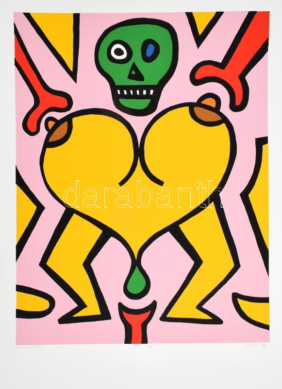 ef.Zámbó (efZámbó) István (1950-): Vidám jelkép, 1996-2010. Szitanyomat, papír, jelzett, számozott: 7/30, 78×59 cm. Lap alján egészen apró szakadással. / screenprint on paper, signed, numbered: 7/30, with very small tear at the bottom of the sheet