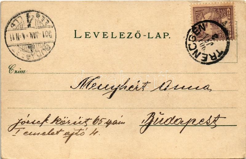 Leírás: 1901 Trencsén, Trencín; vár és vasúti híd. F. Richter Kunstanstalt / castle and railway bridge (kopott sarkak / worn corners)