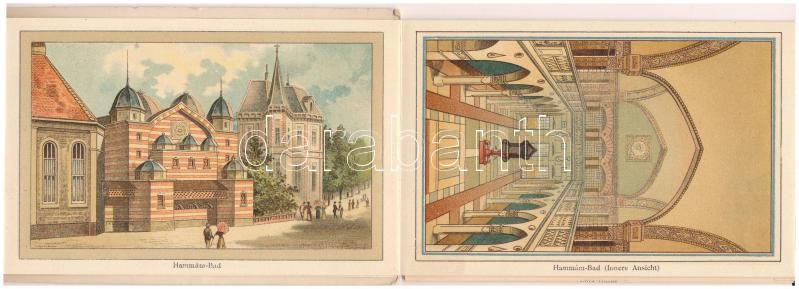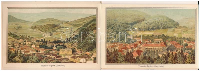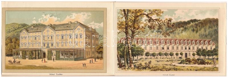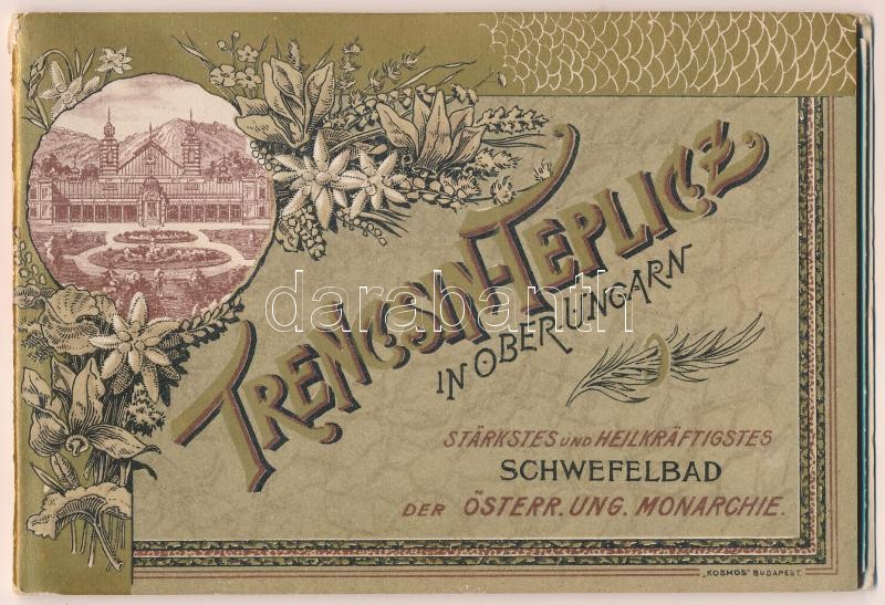 Trencsénteplic, Trencianske Teplice; In Ober-Ungarn. Stärkstes und Heilkräftigstes Schwefelbad der Österr. Ung. Monarchie / Az Osztrák-Magyar Monarchia legerősebb és leggyógyítóbb kénes fürdője. Kosmos Kunstanstalt litho leporelloja 12 képpel / The strongest and most healing sulfur bath in the Austro-Hungarian Empire, spa. litho leporello with 12 images
