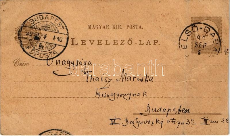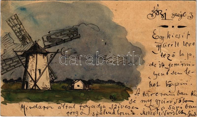 1899 (Vorläufer) Sári (Dabas), szélmalom. Tus és akvarell rajz Thaisz ... https://www.darabanth.com/hu/38-Nagyaukcio/38.1/Kepeslapok/Magyarorszag~15644/1899-Vorlaufer-Sari-Dabas-szelmalom-Tus-es-akvarell-rajz-Thaisz-Mariskanak-cimezve-win~II2576298