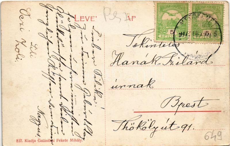 Leírás: 1917 Kecskemét, Iparos Otthon kávéház és étterem. Galánthai Fekete Mihály kiadása