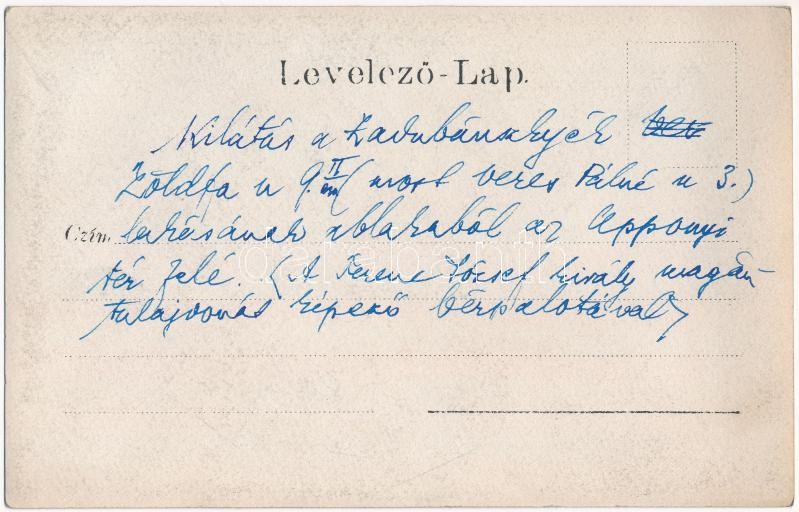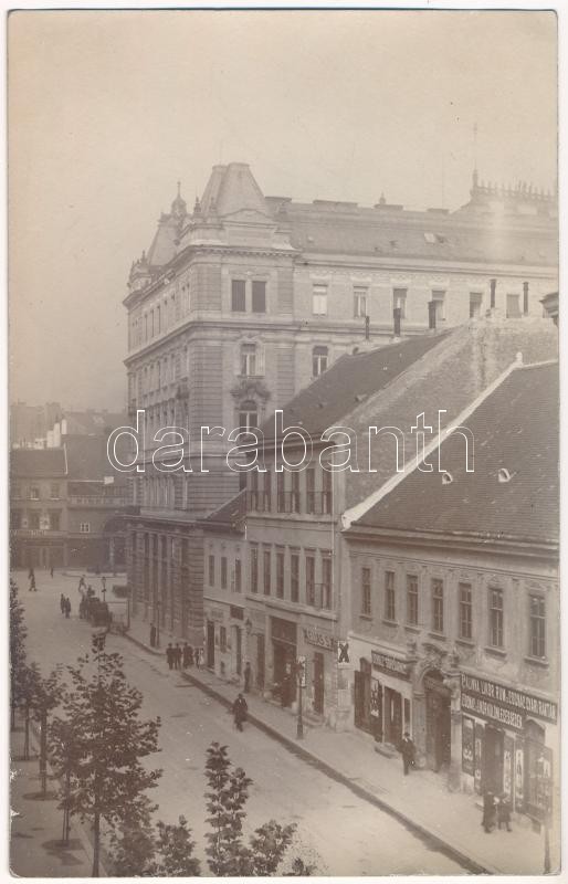Budapest V. Kilátás a Zöldfa utca 9. (mai Veres Pálné utca) számú lakás ablakából az Apponyi tér felé (mai Ferenciek tere), Ferenc József király magántulajdonát képező bérpalotával, Scholz sörcsarnoka, Éliás S. és Winkle N. üzlete, zongoraterem. photo