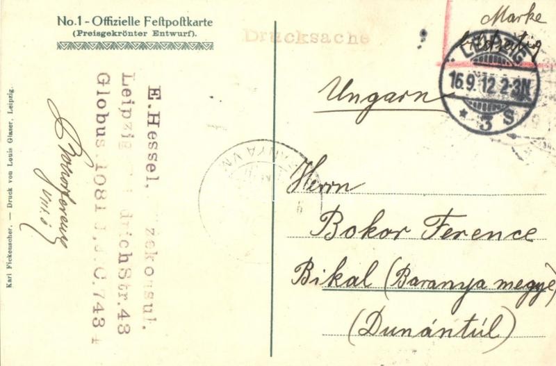 1911 Leipzig, Mitteldeutsches Bundesschiessen / Central German federal shooting event advertisement card. No. 1. Offizielle Feldpostkarte Louis Glaser s: G. Triebe