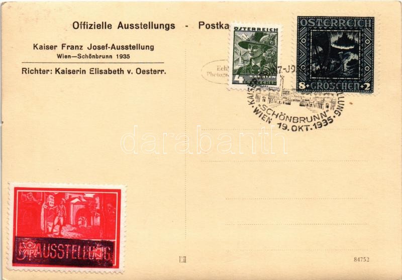 Kaiserin Elisabeth v. Oesterr. / Erzsébet királyné (Sissi) / Empress Elisabeth of Austria (Sisi) + "1935 Kaiser Franz Josef-Ausstellung Wien-Schönbrunn" So. Stpl