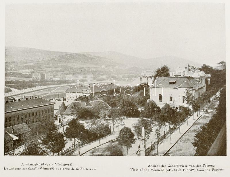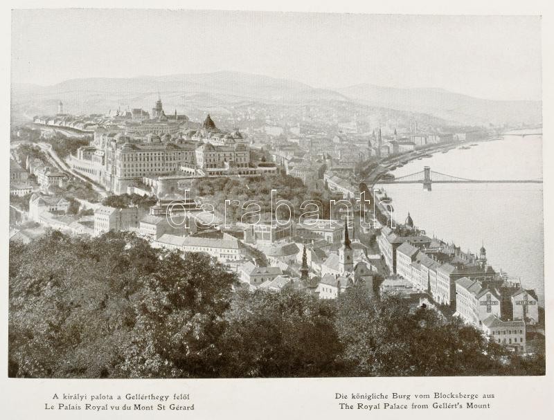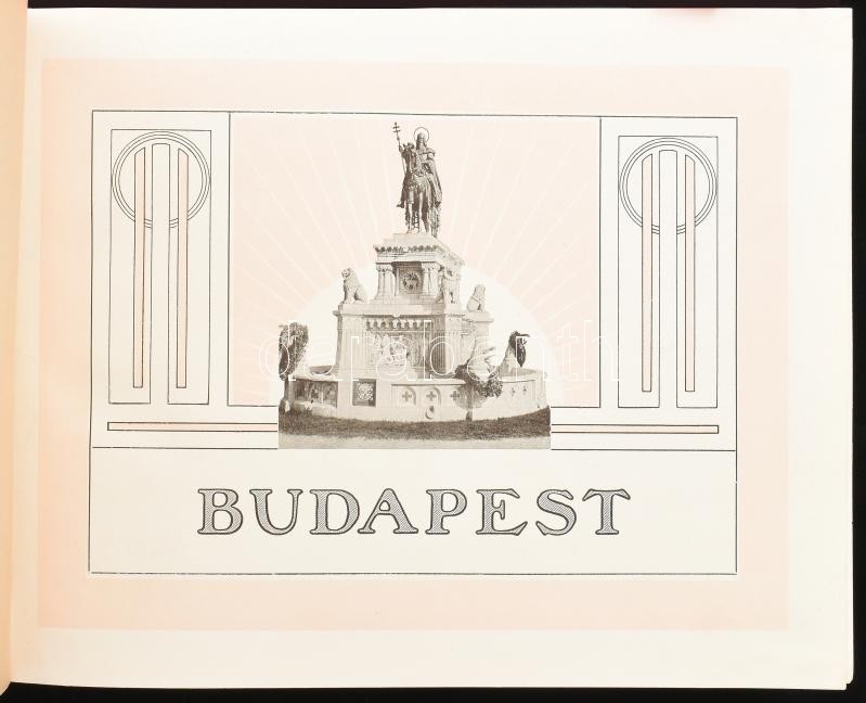 cca 1910 Budapest. Képes album Budapestről, fekete-fehér fotókkal. Bp.,én.,Hornyánszky Viktor, 8 + 65+11 sztl. lev. Második kiadás. Magyar, német, francia és angol nyelven. Rendkívül gazdag fekete-fehér képanyaggal illusztrált, négy nyelvű képfeliratokkal. Kiadói aranyozott egészvászon-kötés, a borítón Budapest címerrel, a borítón kis kopásnyomokkal.