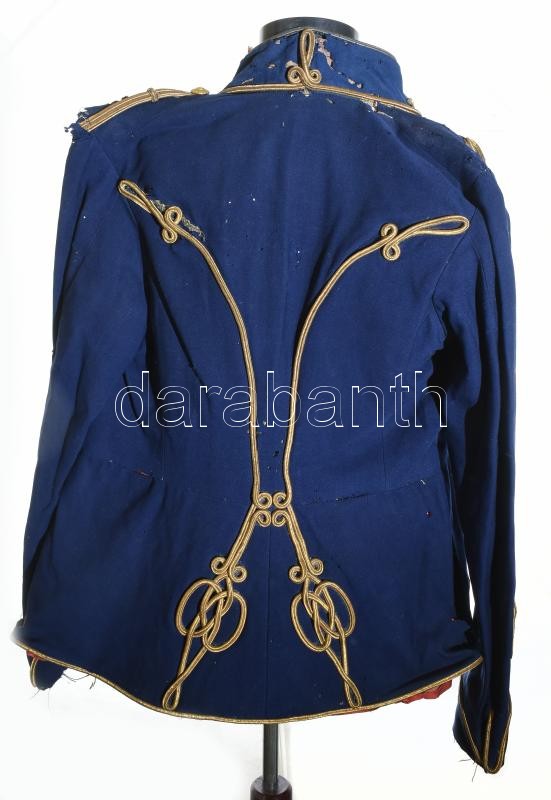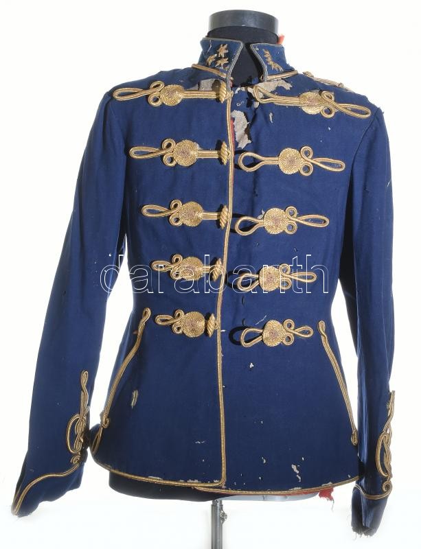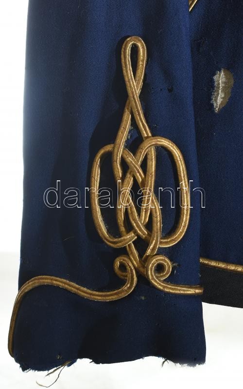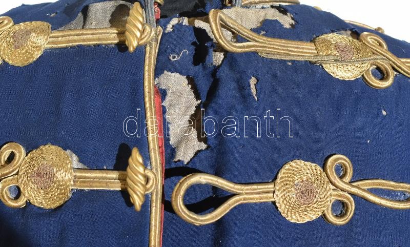 Leírás: M. kir. honv. 1892M huszár tiszti attila, századosi rendfokozat jelzéssel. Erősen sérült / Hungarian officer uniform, damaged