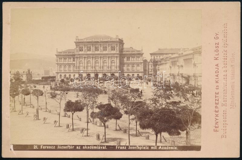Leírás: cca 1870 Budapest, Ferenc József tér (Széchenyi István tér) az Akadémiával, keményhátú fotó Klösz György műterméből, 11×16,5 cm