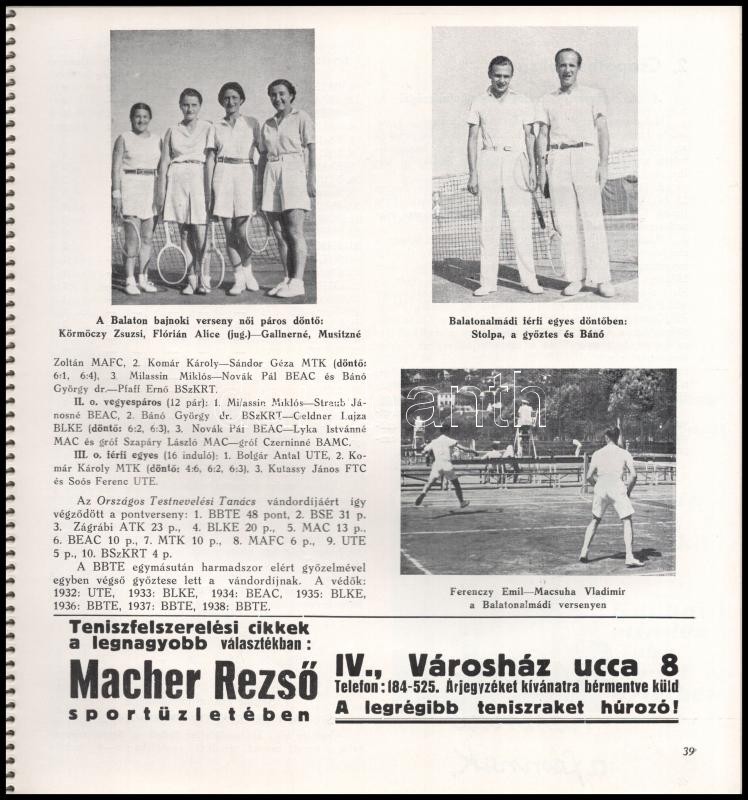 1938 A Magyar Országos Lawn-Tennis Szövetség évkönyve rengeteg fénykép... https://www.darabanth.com/hu/38-Nagyaukcio/38.1/Mutargy-szobor-papirregiseg/Nyomtatvanyok~15593/1938-A-Magyar-Orszagos-Lawn-Tennis-Szovetseg-evkonyve-rengeteg-fenykeppel-es-adattal-dekora~II2611996