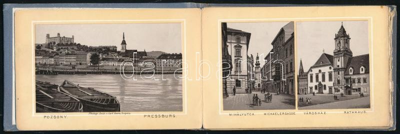 Leírás: cca 1870 Pozsony (Pressburg / Bratislava) látnivalóit bemutató leporelló magyar és német nyelven feliratozva, hajtásszéli sérülésekkel