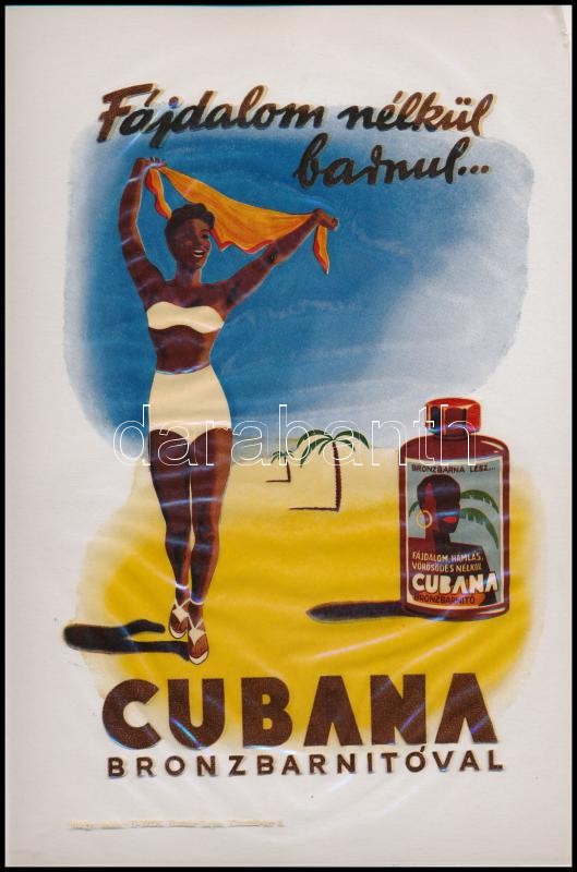"Cubana bronzbarnítóval fájdalom nélkül barnul...", Cubana b... https://www.darabanth.com/hu/38-Nagyaukcio/38.1/Mutargy-szobor-papirregiseg/Reklam~15585/Cubana-bronzbarnitoval-fajdalom-nelkul-barnul-Cubana-barnito-illusztralt-atlatszo-~II2610985
