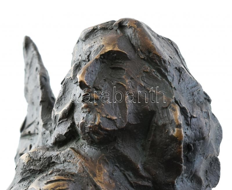 Leírás: Kárpáti Tamás (1949- ): Angyal. Öntött, patinázott bronz. Jelezve hátoldalon lent: KT. E/A (művészpéldány) m:25cm