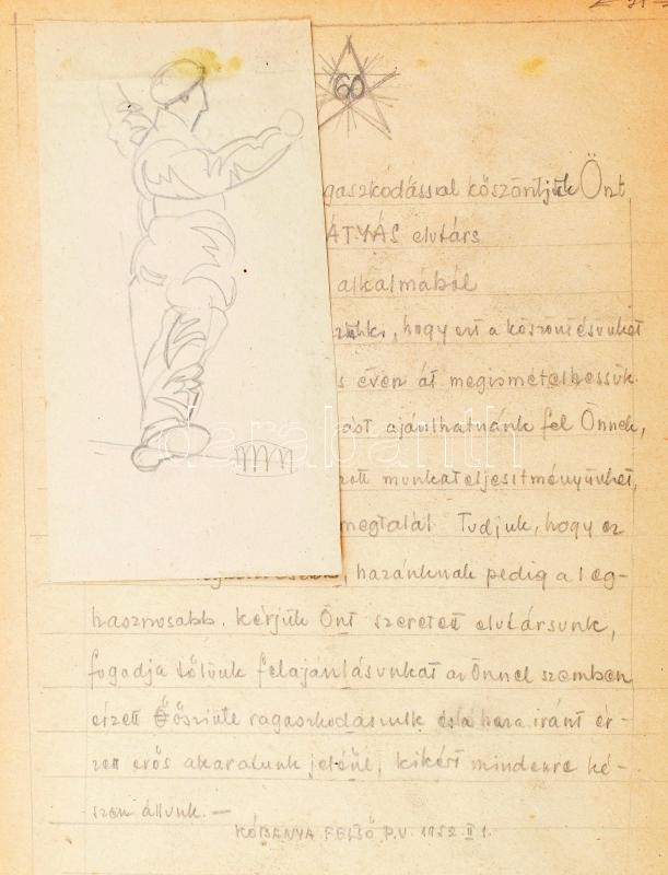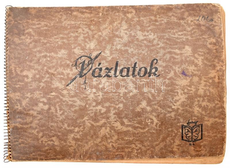 cca 1952 Vázlatfüzet benne rajzokkal, bejegyzésekkel, beragasztott nyomtatványokkal, Bihácsi György névbejegyzéssel az elején, "Villamos Vasuttal 5 A Szocializmusért/MÁV. Villamos Felsővezeték Építésvezetőség" mellette egykorú beragasztott fotókkal, villamos mozdony grafika, Rákosi Mátyás 60. születésnapjára készült vázlatrajz és szöveg (Kőbánya Felső P.U.) más vázlatrajzok, jegyzetek, és néhány beragasztott nyomtatvány, szakadt elülső borítóval, 24x34 cm