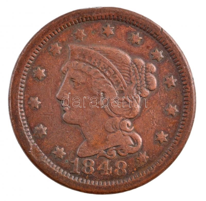 Leírás: Amerikai Egyesült Államok 1848. 1c Cu Philadelphia (10,59g) T:2- ph. / USA 1848. 1 Cent Cu Philadelphia (10,59g) C:VF edge error Krause KM# 67