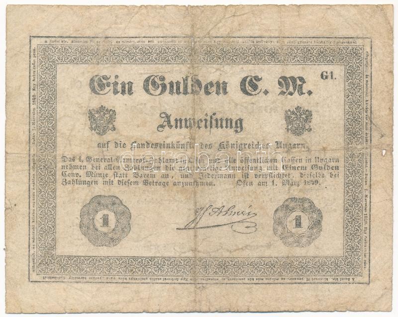 1849. 1Ft "Almássy" vízjeles papíron, "G1" betűjel... https://www.darabanth.com/hu/38-Nagyaukcio/38.1/Numizmatika/Magyar-es-kulfoldi-bankjegyek~15627/1849-1Ft-Almassy-vizjeles-papiron-G1-betujel-TIII-ly-Hungary-1849-1-Forint-Almassy~II2616677