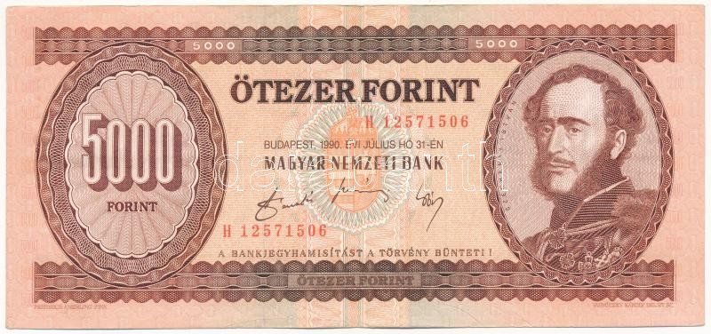Leírás: 1990. 5000Ft "H 12571506" T:III / Hungary 1990. 5000 Forint "H 12571506" C:F