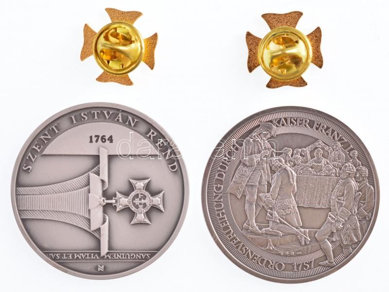 2010. A Magyar Pénzverő és a Münze Österreich közös kiadványa 2010. "Mária Terézia Rend" Ag emlékérem (20g/0.925/40mm) + "Szent István Rend" Ag emlékérem (20g/0.999/40mm), tájékoztatóval, tanúsítvánnyal, két miniatűr jelvénnyel eredeti dobozban T:BU / 2010. Joint issue of the Hungarian Mint and Austrian Mint: "Maria Theresia Orden" Ag medallion (20g/0.925/40mm)+ "Saint Stephan Orden" Ag medallion (20g/0.999/40mm), with information booklet, certificate and two miniature badges in original box C:BU