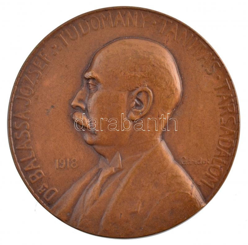 Leírás: Gárdos Aladár (1878-1944) 1918. "Dr. Balassa József, Tudomány - Tanítás - Társadalom" egyoldalas Br emlékérem (50mm) T:1- patina /