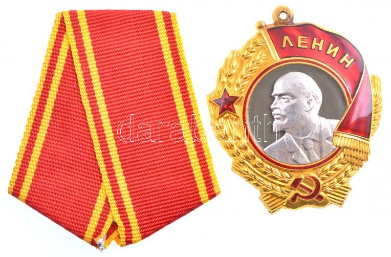Szovjetunió ~1950-1991. "Lenin Rend (6-os típus)" zománcozott arany és platina kitüntetés mellszalaggal, hátlapján "252507" sorszámmal. A mellszalag kontraszeme letört. T:1- /