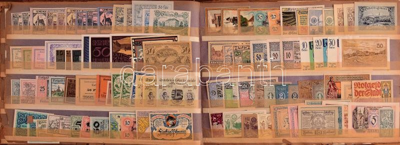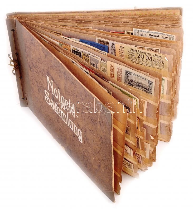 ~1250db-os, tartalmas, rendezett német és osztrák városi szükségpénz gyűjtemény dekoratív, kopottas "Notgeld Sammlung (Szükségpénz gyűjtemény) albumban, benne rengeteg különféle, sorok is, nagyrészt hajtatlan állapotban. Megtekintésre ajánlott! T:vegyes / ~1250pcs of mixed, arranged German and Austrian city necessity notes, in decorative, worn "Notgeld Sammlung (Necessity Note Collection)" collectors album, with lots of different pcs and with series, mostly in unfolded condition. Recommended for viewing!
